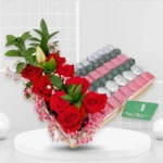 Red rose and leaves arrangemet
